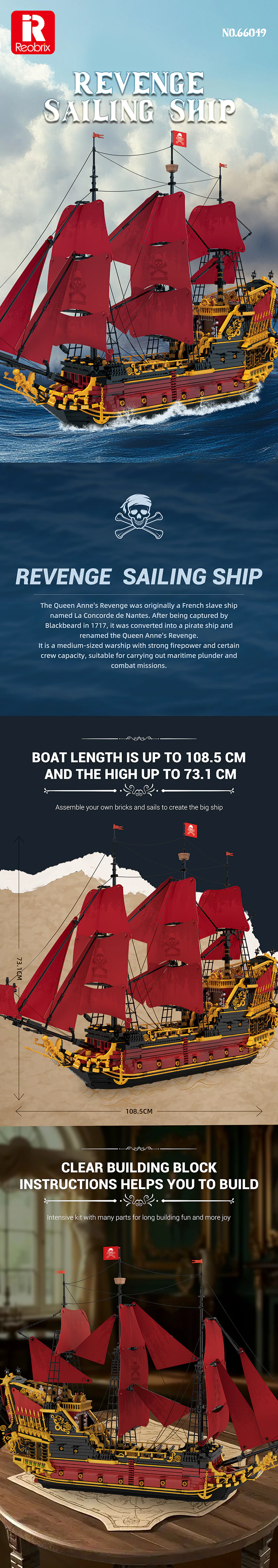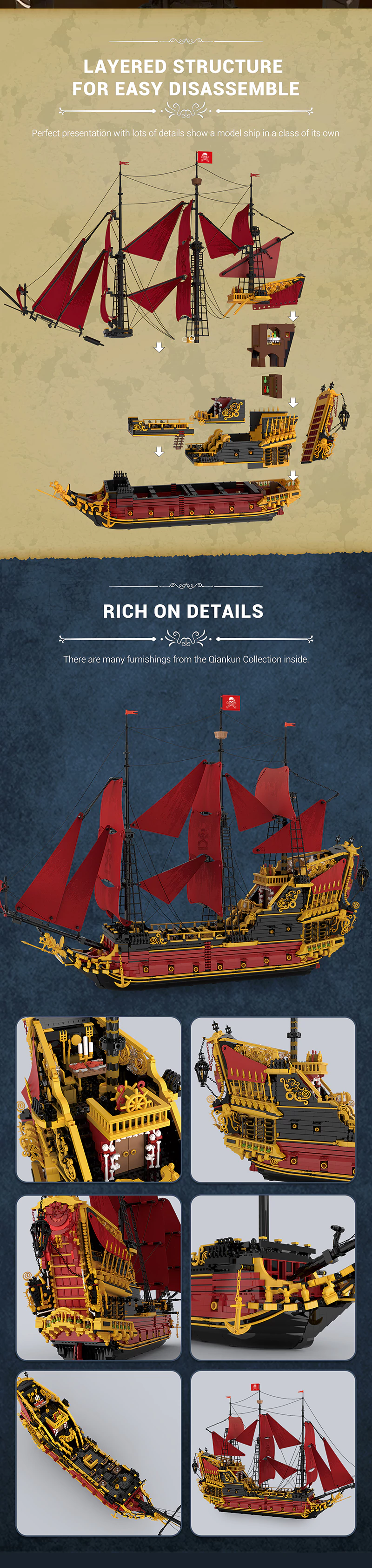 - Projekt oparty na statku Queen Anne's Revenge - model nawiązuje do legendarnego pirackiego okrętu dowodzonego przez Czarnobrodego – jednego z najsłynniejszych korsarzy w historii.