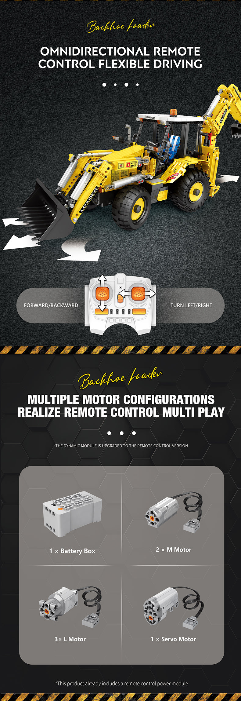 Zestaw charakteryzuje się ruchomym ramieniem z łyżką koparkową z tyłu, które można podnosić i opuszczać, umożliwiając „wykopywanie” i usuwanie materiałów.