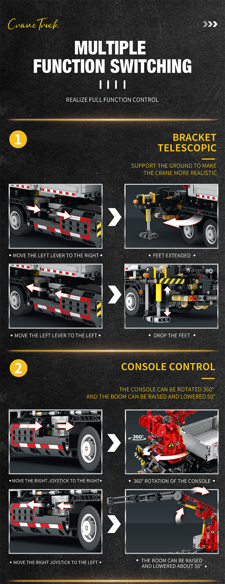 Przede wszystkim, wyjątkowa dbałość o detale – każda część została zaprojektowana z myślą o realistycznym odwzorowaniu wyglądu i funkcji mobilnego żurawia.