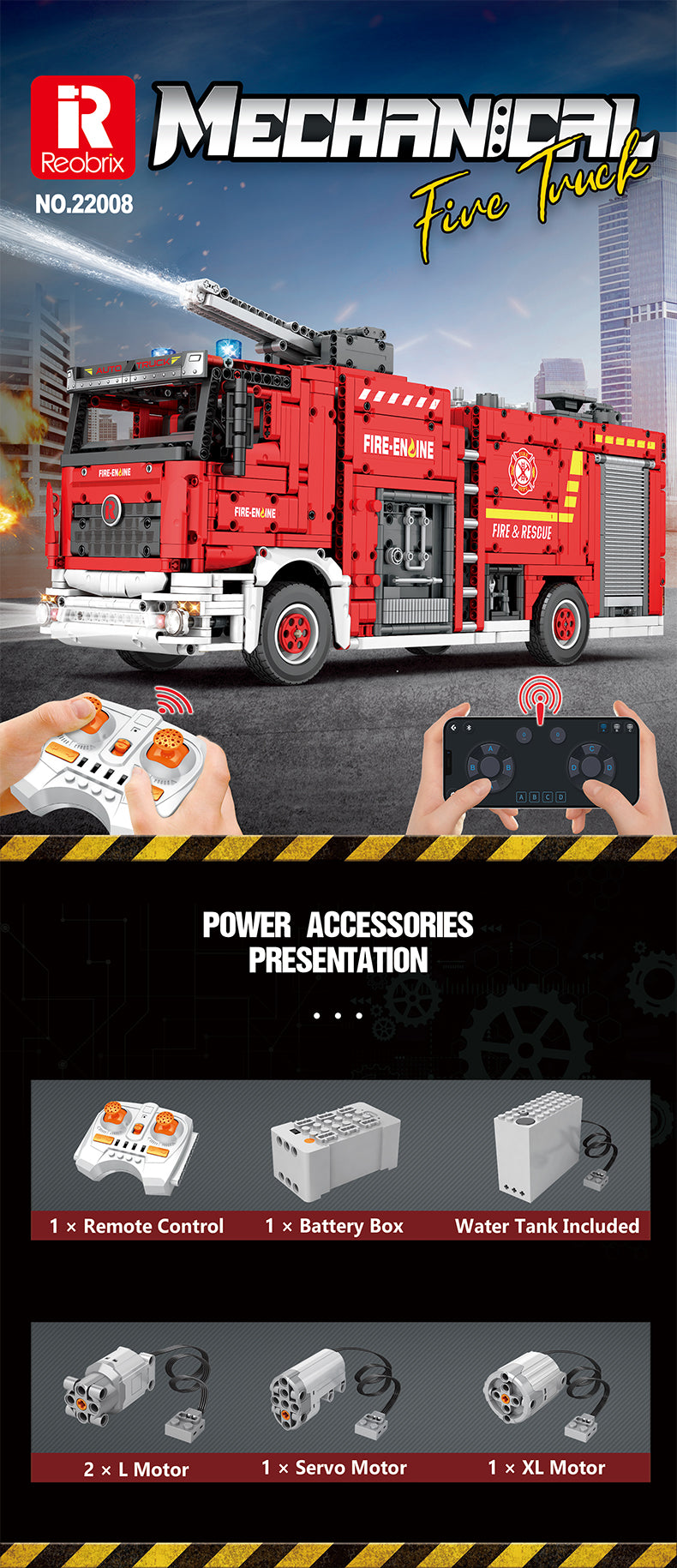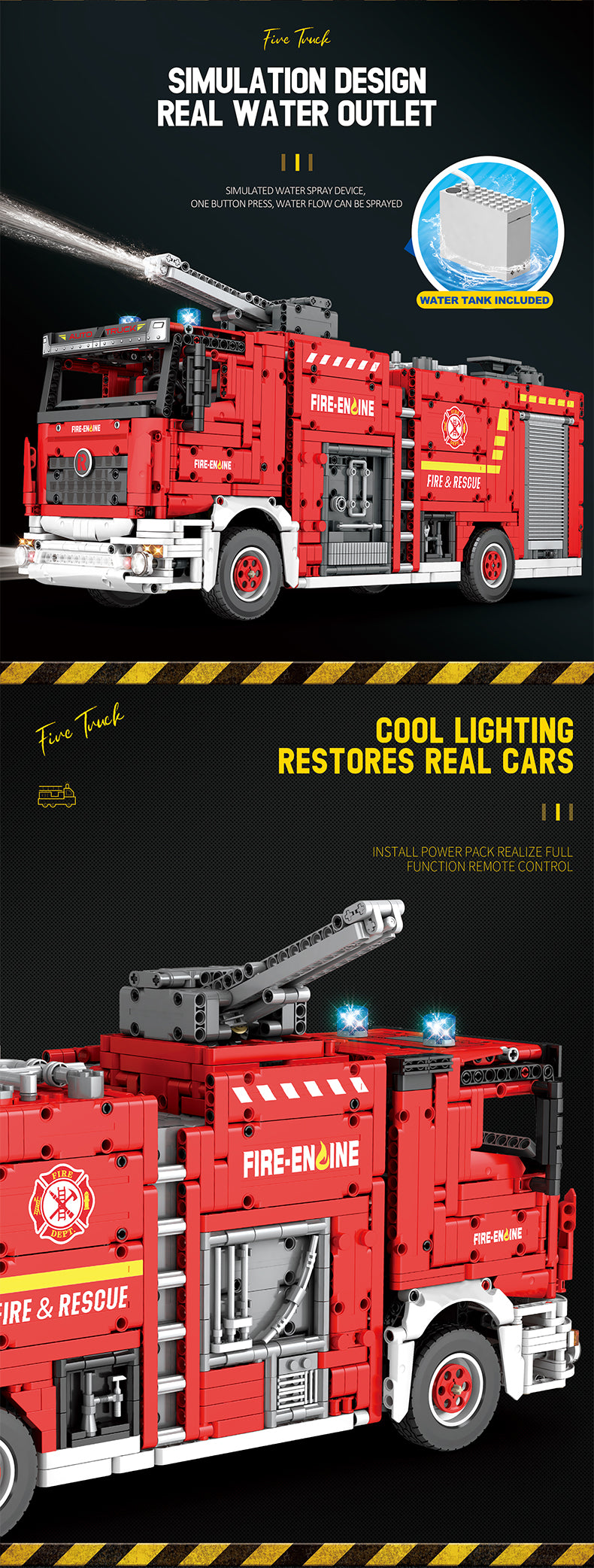 Klocki Reobrix Wóz Strażacki z armatką wodną - Wersja Interaktywna 2888 PCS, z mechaniczną armatką wodną!