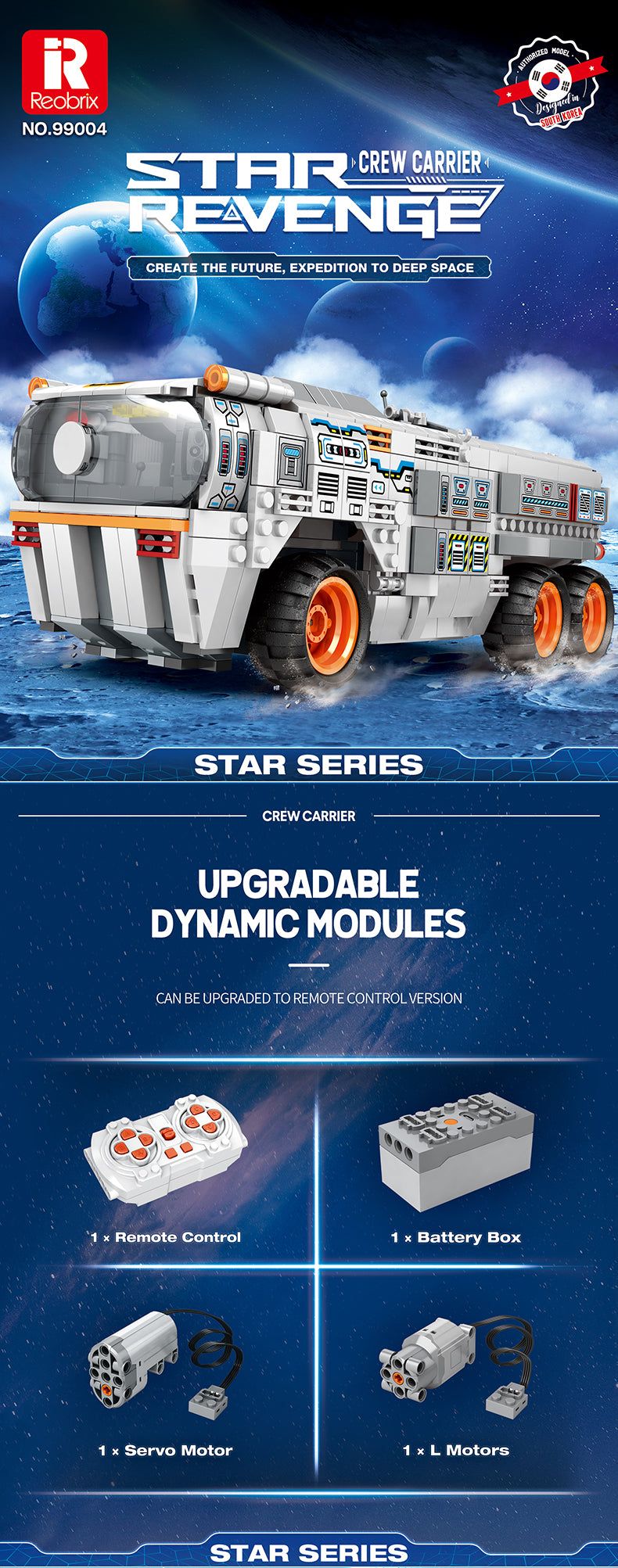 Reobrix Kosmiczny Transporter - Wersja Interaktywna 1298 PCS, eksploracja planet nigdy nie była wygodniejsza!